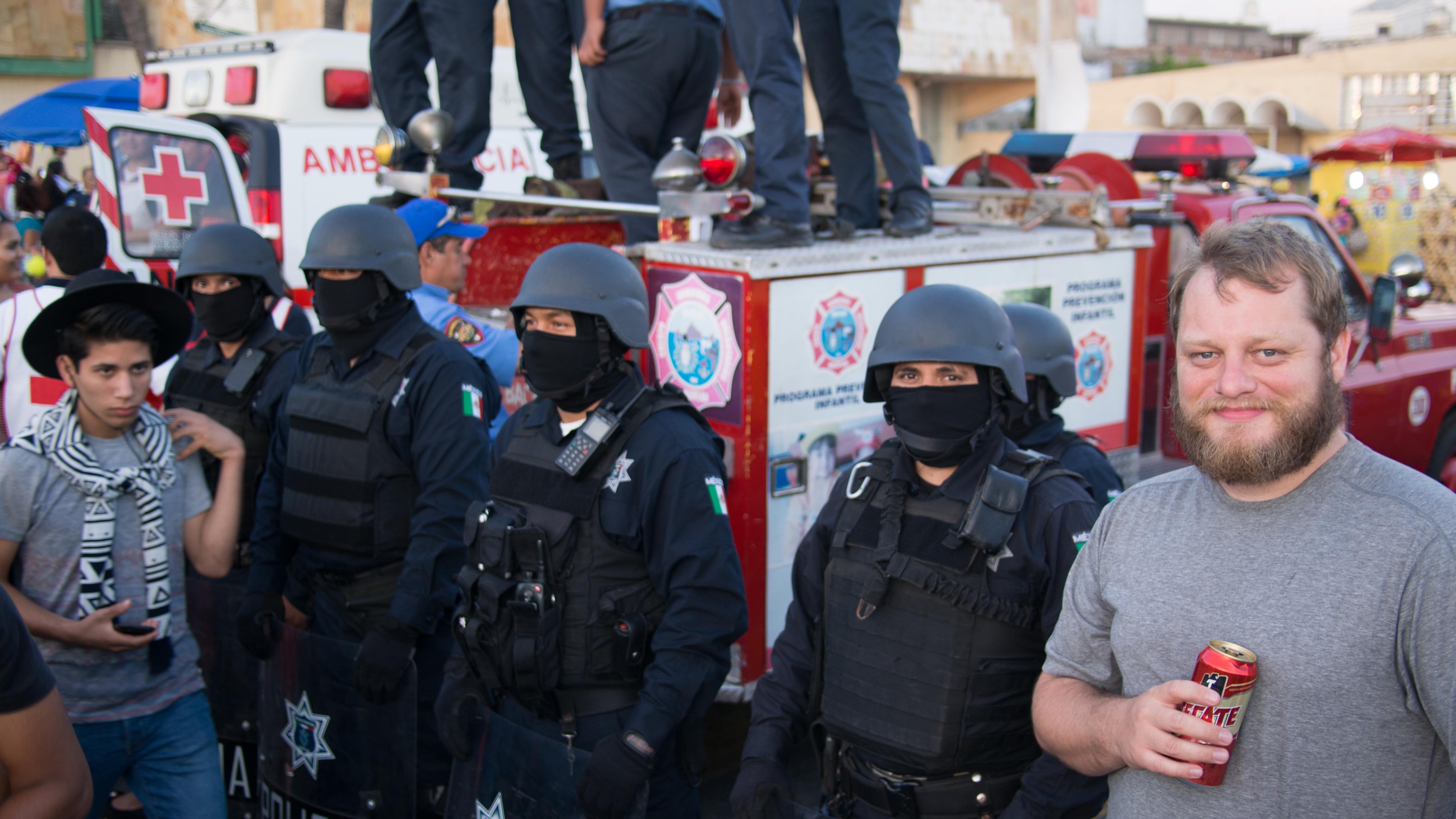Myself, Amy, this guy named Dane (whom I had coincidentally met before in La Paz, Baja and was/is bicycling down to Brazil for the World Cup), and another gentlemen whose name escapes me from Canada sailing his way along the Mexican coast all headed down to Malecón fairly early with plenty of beers to secure a good viewing point of the parade.