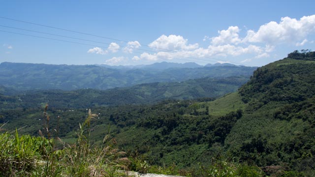 Cresting the mountain (whose name I never learned), a rollicking ride lay ahead, as switchback after switchback accompanied us up and down the mountain ranges, through many a small farming village. At one point it started to drizzle, the road getting slick, which made my motorcycling quite exciting, what with it only having a rear brake. If you’ve never ridden before, it’s exceedingly easy to lock the rear wheel, which is usually not a problem (and often warranted), but it can be quite dangerous on wet roads, occasionaly resulting in a lowside or (god forbid) highside crash.